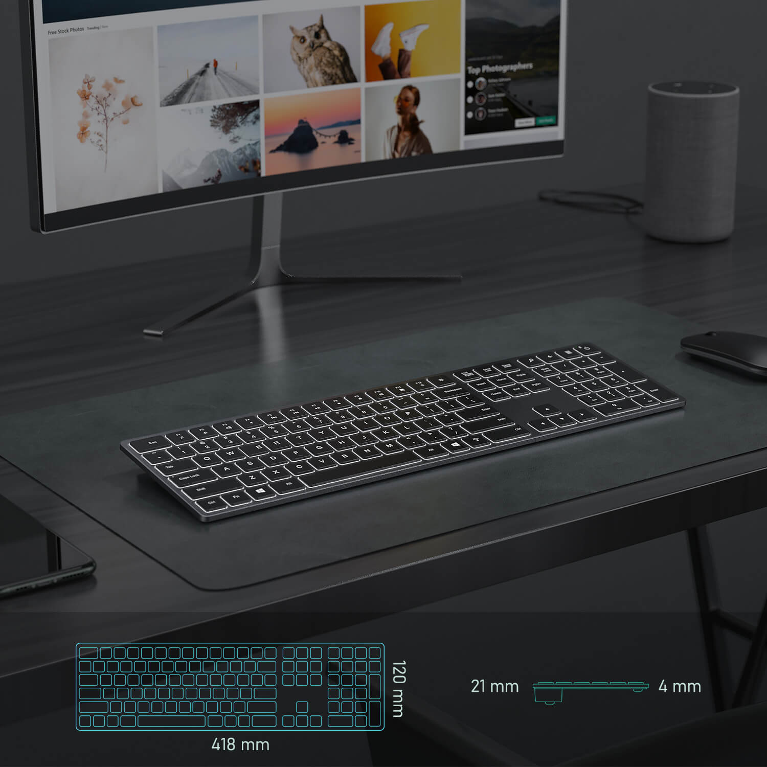 Schlanke und elegante Tastatur mit sehr schönem Tastenanschlag, die auch an Ihrem Arbeitsplatz ein elegantes Profil aufweist.