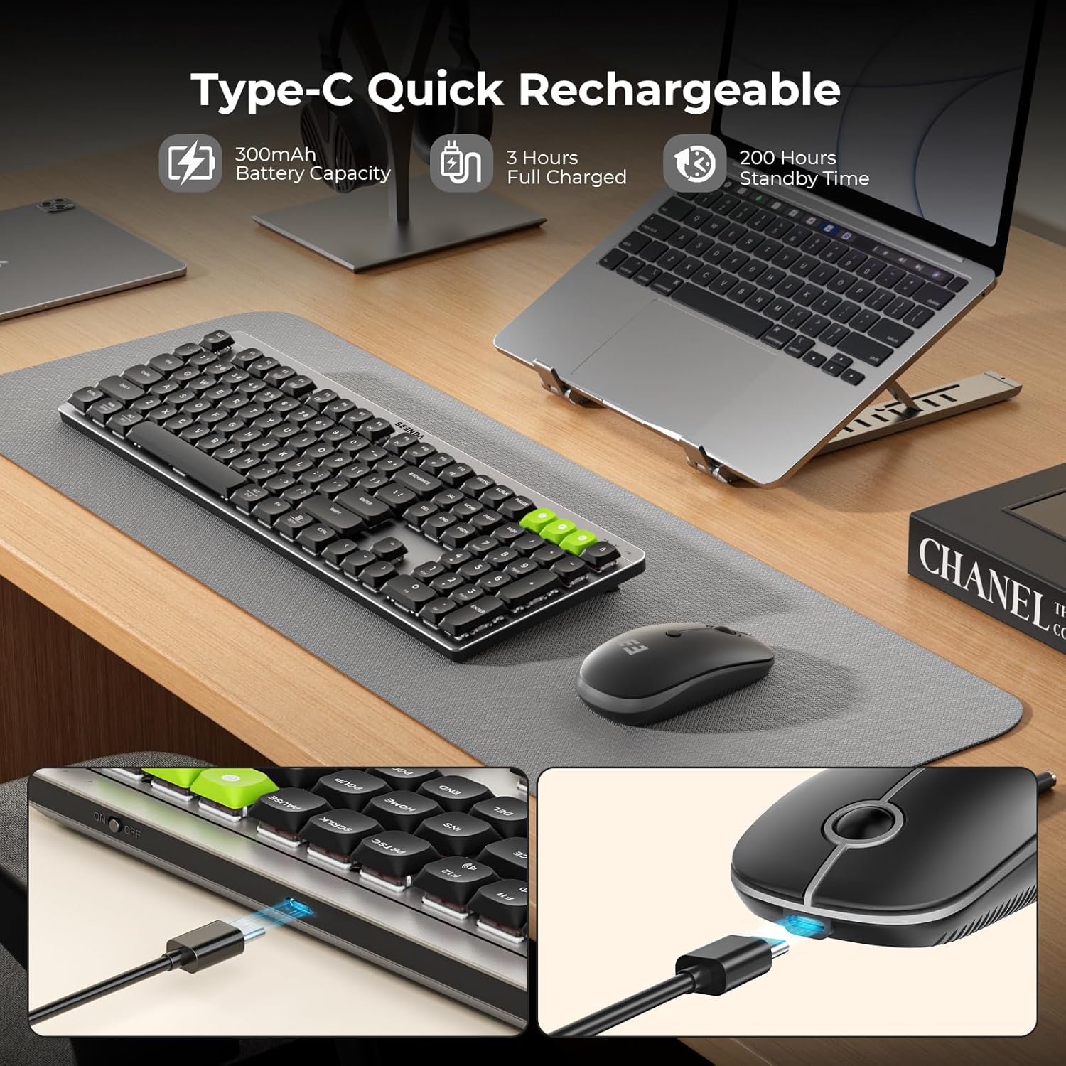 The quiet mouse and USB-C rechargeable design keep your workflow consistent day after day, without frequent battery interruptions.